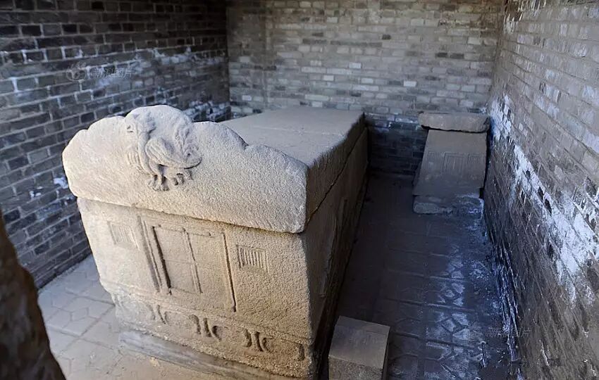 石棺是披云真人、道教宗师丘处机的弟子之一宋德方的石棺。新中国成立后被考古人员发掘出土,后一直存放在这座假山上。