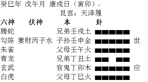 勾陈 妻财丙子水 子孙壬申金 ▅▅▅▅▅ 世 子孙壬申金 ▅▅▅▅▅ 世