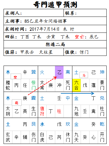 这是一个85年女士测算的实例,当时,她来到我的工作室,打扮也时尚,就说帮她看一件事,我当时写字台上就有个奇门遁甲局,看着这个局,就简单说了下,我说,她是近来发现婚姻问题,想要离婚,而且是她老公在外有其他的人,还给钱人家花。说到这些,她就问我,什么时候会离婚?女儿跟谁?下面来作些解释: