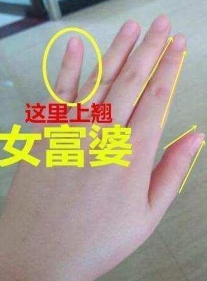 4、如果你看到一个女人的手掌十指尖尖,手如竹笋,掌背丰盈,小指上翘,那就不要等了,这样的女人一定是富婆。但是需要注意的是,这样的女人一般是通过婚姻获得富贵,或者是离异后获得丰厚钱财,又或者是婚后丈夫发达成为贤内助,具体是哪一种还要看手纹的具体走向方知。待看清楚后方可下手。