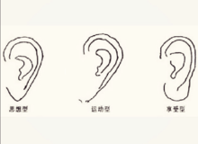 耳为采听官,外耳轮曰轮,内耳轮曰廓,耳门亦称风门,耳门外突起处称风挡,风挡外称命门,耳垂又曰垂珠。耳高约与眉齐,耳须色明润泽,轮廓完整,贴肉敦厚,耳门宽大,有此耳相为金木二星照命,乃为采听官成。若廓反轮飞、或尖、或过窄过小即是陷了二星,田宅受损,财帛虚耗。