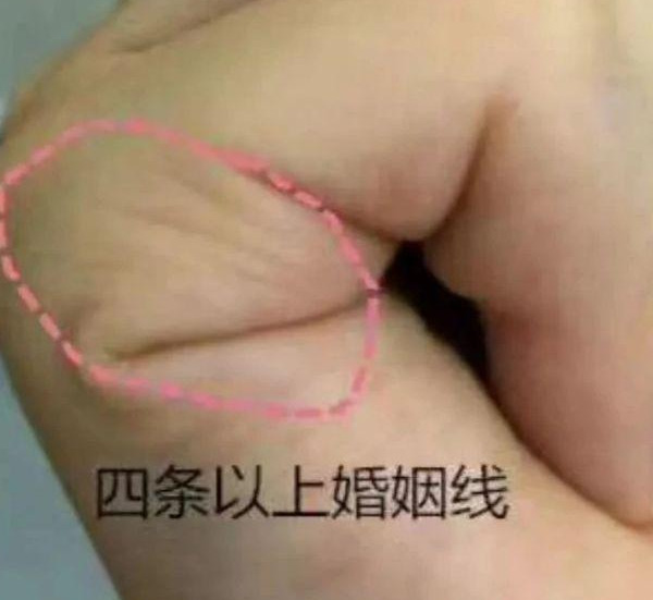 3、最下面是最长的婚姻线,而上面有一条短婚姻线 分析结果: 从一夜情到找情人,还有什么能够洗清这个时代不忠贞的名声。谁都知道这段感情99%结尾都是无疾而终,但正是那1%,刺激得无数男女拼命追寻。婚姻像是给别人看的,情人这两个字更像是说给自己的。结婚是因为太相信爱情或是不相信爱情,但谁都不能否认自己对合理的婚姻曾有过曼妙的憧憬。无论是行动还是心动,相爱的本意不是要伤害任何人,切记谨慎后行。
